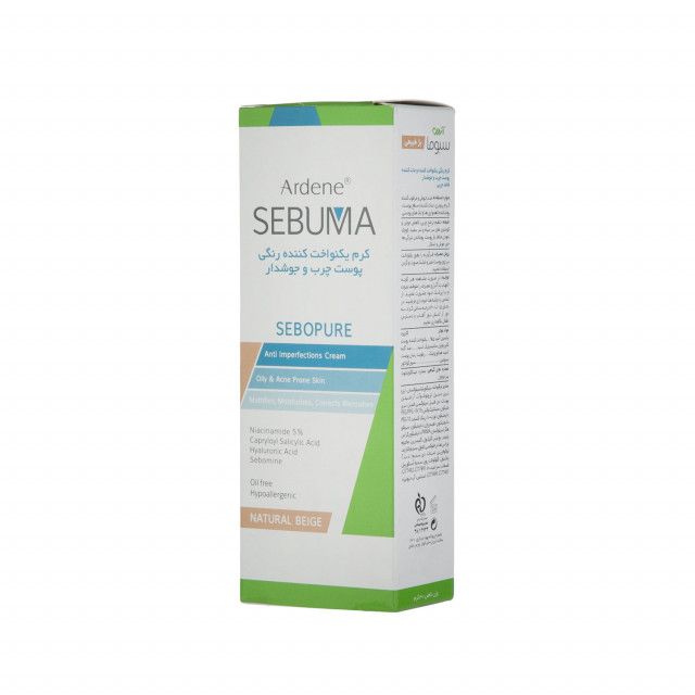 کرم ضد جوش رنگی آردن سری Sebuma دارای عملکرد چندگانه ضد جوش، مرطوب کننده، مات کننده سطح پوست و پوشش دهنده عیوب پوستی و ناهمواری هاست. این محصول فاقد چربی و ترکیبات کومدون زا بوده و بر پایه فرمولاسیون سیلیکونی و پوشش کرم پودری تولید شده است. کنترل ترشح چربی پوست، برطرف کردن براقیت بیش از حد آن، پوشش لک ها و کاهش و درمان جوش و آکنه از دیگر اثرات این کرم بی نظیر است. کرم ضد جوش آردن سری Sebuma حاوی نیاسین آمید، سبومین و اسید هیالورونیک است و یک کرم پودر مرطوب کننده و درمانی به شمار می رود.
