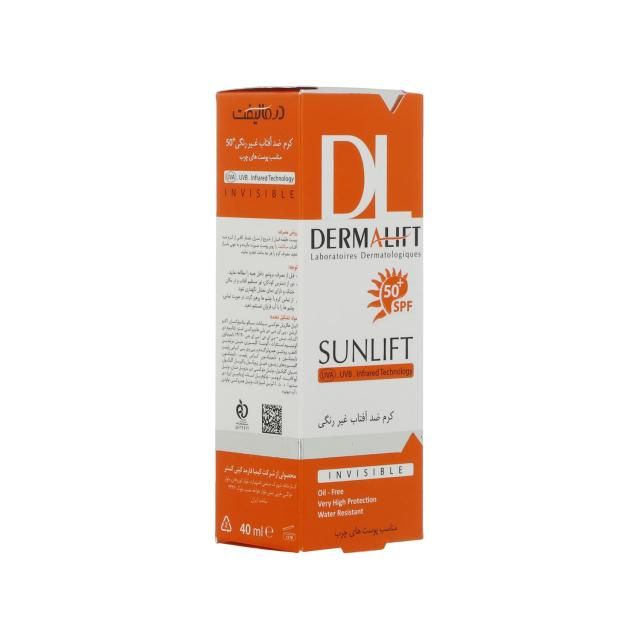 کرم ضد آفتاب بدون رنگ درمالیفت مدل SPF50 محافظ UVA ،UVB، ضد آب، مناسب پوست چرب حجم 40 میلیلیتر