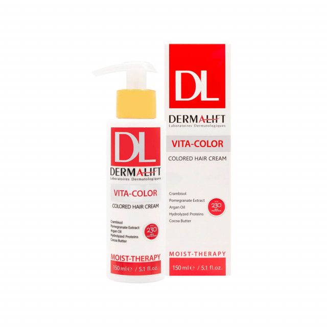 کرم مو ویتا کالر درمالیفت برای استفاده بعد از حمام موهای رنگ شده فرموله شده است که نیازی به آبکشی ندارد. این کرم مو رنگ مو را تثبیت کرده و از کدر شدن و رنگ پریدگی موها جلوگیری می کند. همچنین، با داشتن روغن آرگان و کرامب، موها را تغذیه، آبرسانی و مرطوب کرده و با ایجاد لایه محافظتی بر روی ساقه مو، موجب محافظت از مو در برابر حرارت و بهبود شانه پذیری و حالت دهی آن می شود.
