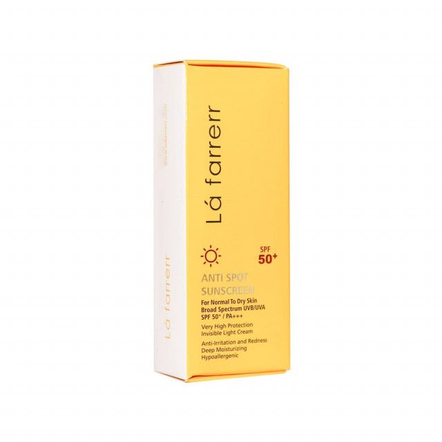 مشخصات کرم ضد آفتاب و ضد لک spf50 لافارر برای پوست خشک و معمولی