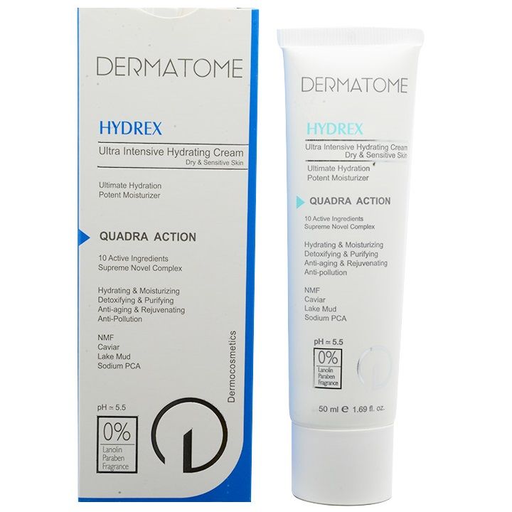 کرم آبرسان قوی هیدرکس درماتوم، مناسب استفاده برای افراد دارای پوست خشک و حساس می باشد و به راحتی با انجام آبرسانی و همچنین محافظت از رطوبت پوست موجب نرمی و لطافت پوست می شود. استفاده از این محصول گردش خون پوست را بالا می برد و اکسیژن رسانی را به خوبی انجام می دهد و با در دست داشتن ترکیبات اختصاصی تغذیه کامل پوست را نیز برعهده دارد. n n ترکیباتn عصاره لجن دریایی، گلیسریل استئارات، استئاریک اسید، بیزواکس، پارافین مایع، ستیل الکل، گلیکول، عصاره خاویار و …n n هشدارn در صورت ایجاد هرگونه حساسیت مصرف این محصول را قطع کنید. n از تماس این محصول با چشم، زخم باز و نواحی مخاطی خودداری شود.n n طریقه نگهداریn در جای خشک و خنک زیر 30 درجه سانتیگراد و دور از تابش نور خورشید نگهداری شود.n n طریقه مصرفn 2 بار در طول روز بعد از پاک کردن پوست مقداری از این کرم را بر روی پوست صورت و گردن قرار داده و به آرامی ماساژ دهید تا جذب شود.